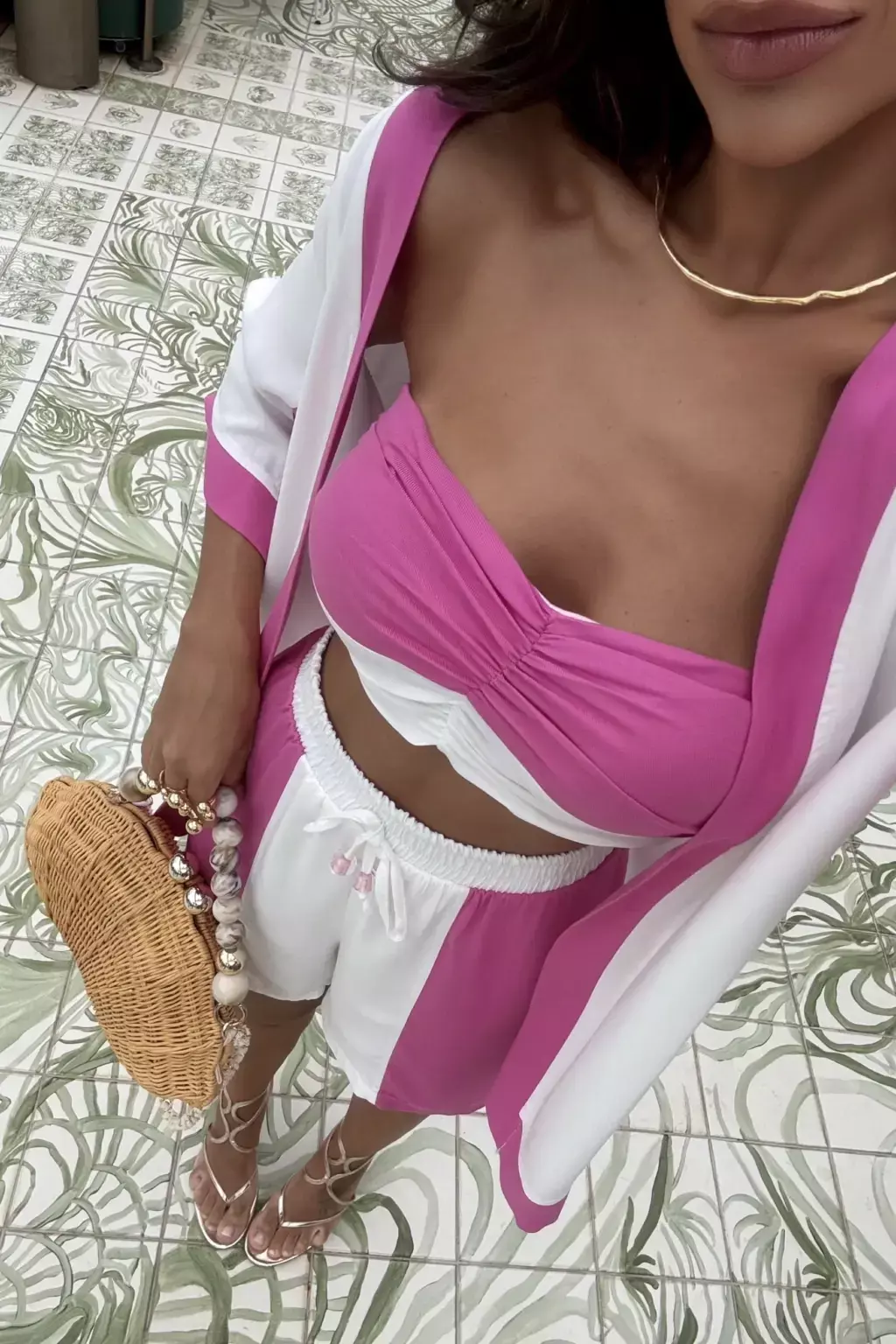 Combine o Conjunto 3 Peças Le com acessórios dourados ou de fibras naturais (como bolsas em palha ou madeira) para destacar ainda mais o frescor da proposta. Sandálias rasteiras para o dia e saltos minimalistas à noite garantem a versatilidade perfeita para o seu look!