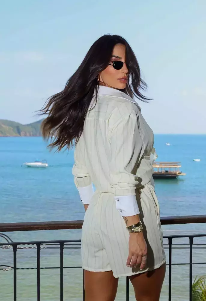 💡 Dica de Moda: Use com sandálias rasteiras e óculos escuros para um look resort chic ou aposte em salto bloco e acessórios dourados para transformar a produção em um outfit de passeio à beira-mar com elegância.