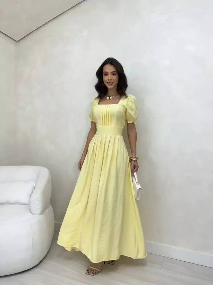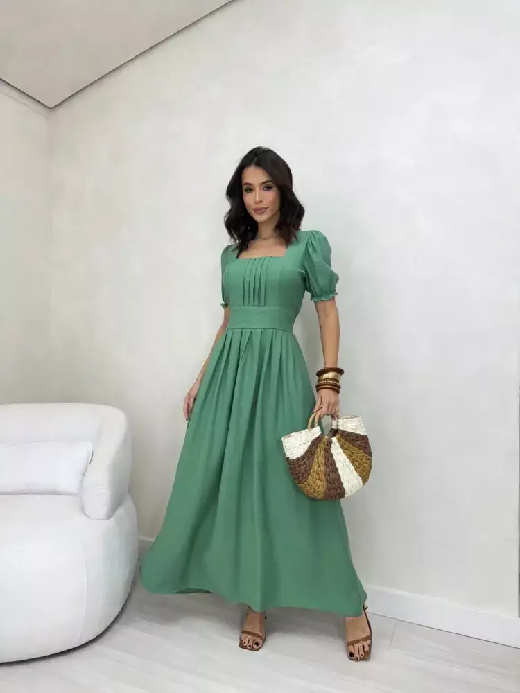 💡 Dica de Moda: combine o Vestido Belle com sandálias de tiras delicadas e acessórios em dourado para realçar ainda mais o charme e a sofisticação dessa peça.