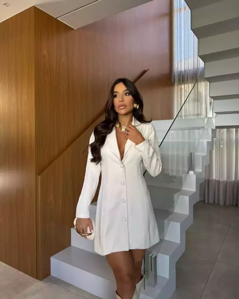 Elegância e atitude em uma única peça. O Vestido Blazer Suede Glam é perfeito para mulheres que querem se destacar com sofisticação e estilo. Com modelagem reta e caimento impecável, ele traz a estrutura clássica do blazer aliada ao charme de um vestido moderno.