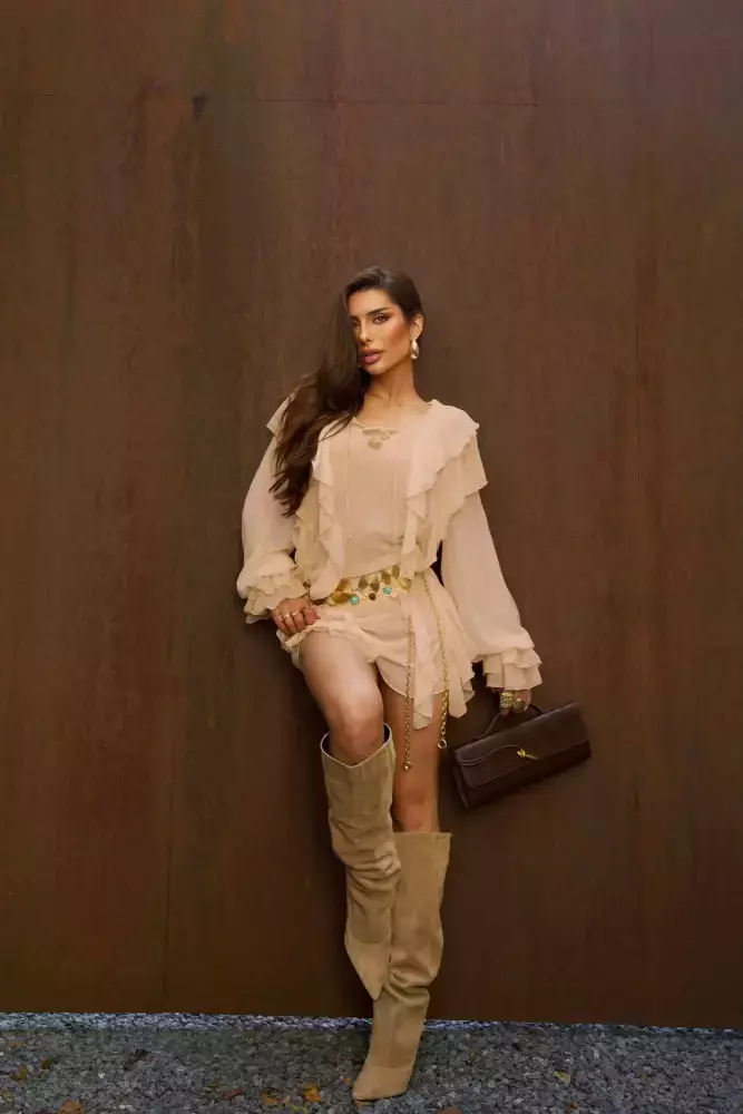 Dica de estilo: combine com cinto dourado e botas para um visual fashionista, ou com sandálias delicadas para um look romântico e leve.